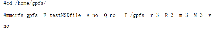 通過mmcrfs我們將建立一個名為gpfs的文件係統。其主要參數-F用於指定之前創建nsdfile –T是指定掛載點,-r指定副本數量。GPFS文件係統建立後,可以通過mmlsfs命令對其進行驗證,確保沒有錯誤產生。如圖16所示:
