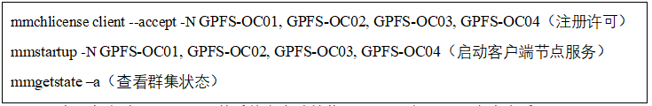 在GPFS集群的任意節點上執行mmaddnode命令,將客戶端節點加入到現有集群中,-N指定前麵創建addnodefile文件。如圖20所示