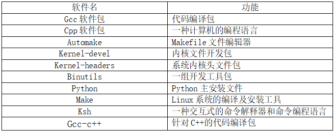表 2. 依賴軟件包