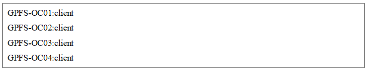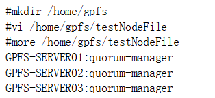 前麵已經介紹,GPFS的客戶端和服務器的區別主要是靠配置文件中的角色定義所決定。為了批量安裝和配置好客戶端,本項目將采用Nodefile方式對客戶端進行單獨安裝。編輯addnodefile文件,內容如圖19所示: