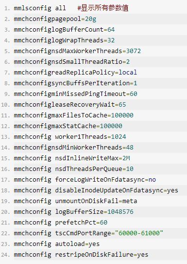 通過mmchconfig命令修改參數,部分參數修改前,需要先關閉群集服務再重啟才能生效。為了安全起見,建議修改前參考IBM官方手冊,對參數了解後再進行調整,避免對業務的影響。如圖18所示