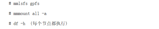 節點服務啟動後,GPFS文件係統會自動掛載,可以通過df –h命令查看。