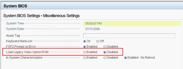 在 BIOS 配置公用程序中 , 請確保在Miscellaneous Settings 設置界麵下,啟用選項Load Legacy Option Rom (默認是禁用的)
